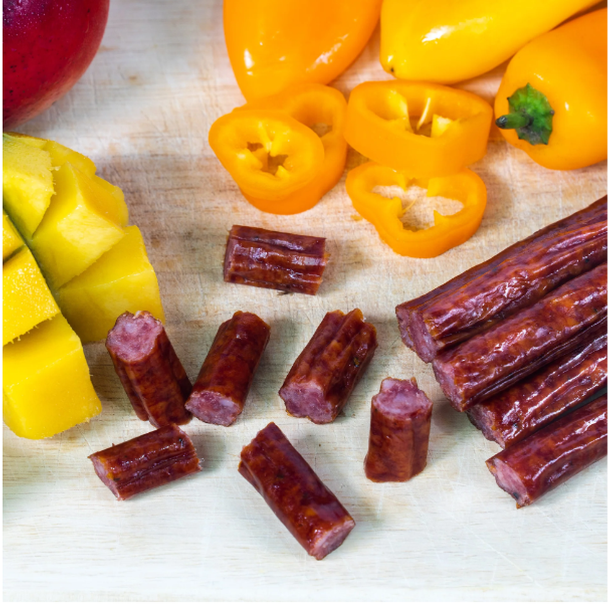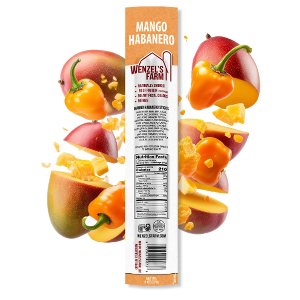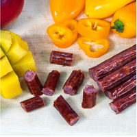 Wenzel's Farm Snack Sticks are made from quality cuts of real meat, always fresh and never frozen, and custom-crafted in small batches. No MSG, no fillers, no binders, no extenders, no artificial colors or flavors, and our Mango Habanero Snack Sticks have the cool, sweet mango flavor, combined with the hot and spicy habanero spice. This tango on your taste buds provides a unique and perfectly balanced taste that will keep you coming back for more. An unbelievable combination of flavor in a meat snack stick made right here in Wisconsin.