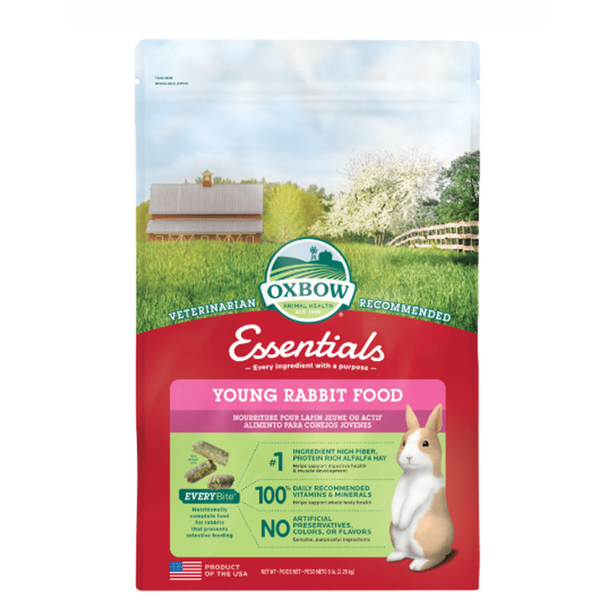 Essentials Young Rabbit is made with premium, purposeful ingredients to support healthy growth and development. We start with high fiber, protein-rich Oxbow Alfalfa hay for energy and healthy digestion and add balanced sources of protein and calcium to help support muscle and bone development. Essentials Young Rabbit provides 100% of your pet's daily recommended vitamins and minerals with no artificial preservatives, colors or flavors.