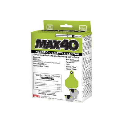 MAX 40 is a new sustained-release, insecticide ear tag containing a highly concentrated, maximum dose of Diazinon insecticide making up 40% of its volume by weight.