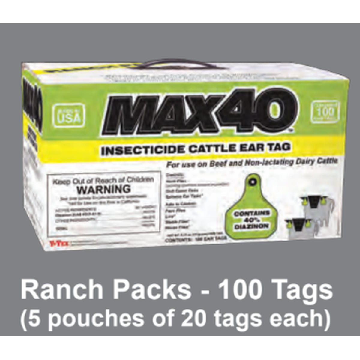 MAX 40 is a new sustained-release, insecticide ear tag containing a highly concentrated, maximum dose of Diazinon insecticide making up 40% of its volume by weight.