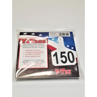 • Y-Tex Y-tags are a one-piece ear tag. Designed with a Surgi-Tip tag tip, a unique four-sided tip for precise piercing, faster healing and improved retention. The tags are made of an advanced polyurethane formula and are engineered to prevent cracking, remain flexible and provide excellent longevity. Longer neck for greater visibility and ultraviolet inhibitors to resist fading