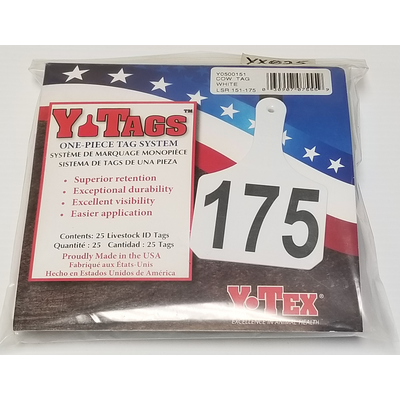 • Y-Tex Y-tags are a one-piece ear tag. Designed with a Surgi-Tip tag tip, a unique four-sided tip for precise piercing, faster healing and improved retention. The tags are made of an advanced polyurethane formula and are engineered to prevent cracking, remain flexible and provide excellent longevity. Longer neck for greater visibility and ultraviolet inhibitors to resist fading